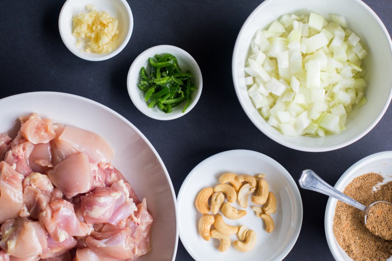 In my new office here in Pensacola Florida, we have an interesting combination of Navy families. Two of my co-workers have spouses they met while stationed in England, and another met his wife while serving in Canada. I’ll often ask them what new dishes they’d like for me to bring into work, as they typically (and unknowingly) are my tasting judges. The question inevitably gets passed to their spouses, and all too often I hear complaints that there are “no good curries” to be found in our town. This Chicken Korma recipe is the result of those conversations.