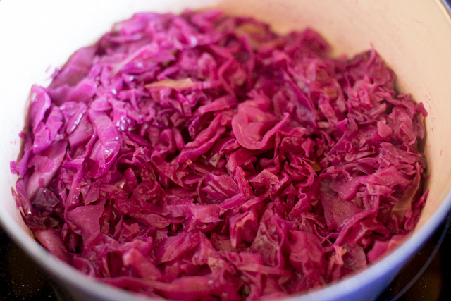 A few years ago I spent a winter in Bavaria, the Southeastern state in Germany. One of my favorite dishes there was Blaukraut, a simple simmered red cabbage. The dish has three different names in Germany – Blaukraut (“blue cabbage”) in the South, Rotkraut (“red cabbage”) in Central Germany, and Rotkohl (also “red cabbage” – kohl is a Northern word for kraut).