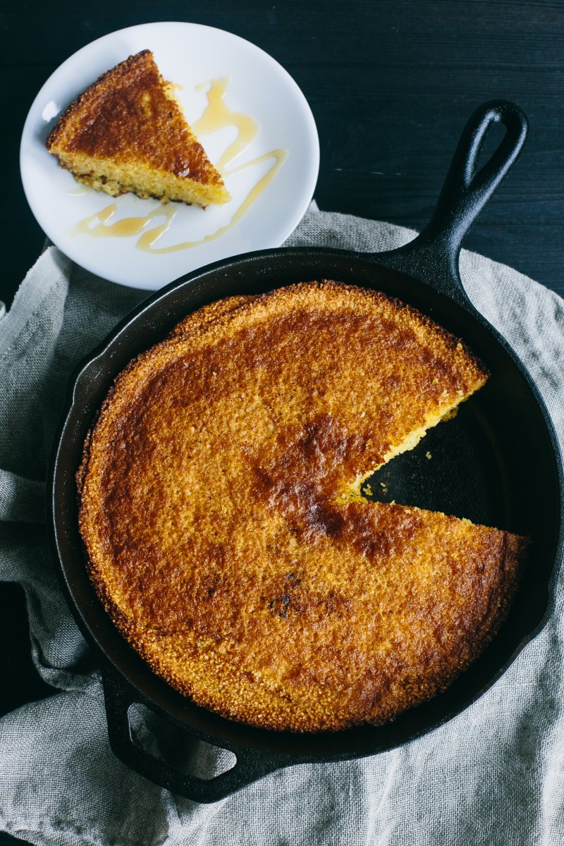 But my favorite aspect of this skillet cornbread is its fleeting nature; right out of the oven, this cornbread is divine, but after an hour or so, its beauty wanes. This is the perfect dish to enjoy amongst friends, with big knobs of butter, and generous drizzles of honey.