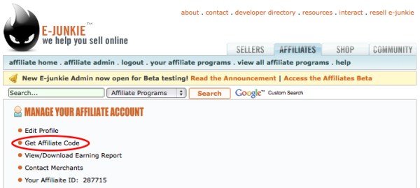 1. Click here to register for an affiliate account with e-junkie if you don’t have one already. You’ll also need a PayPal account to receive payments. If you already have an e-junkie account, click on this link to join my affiliate program.