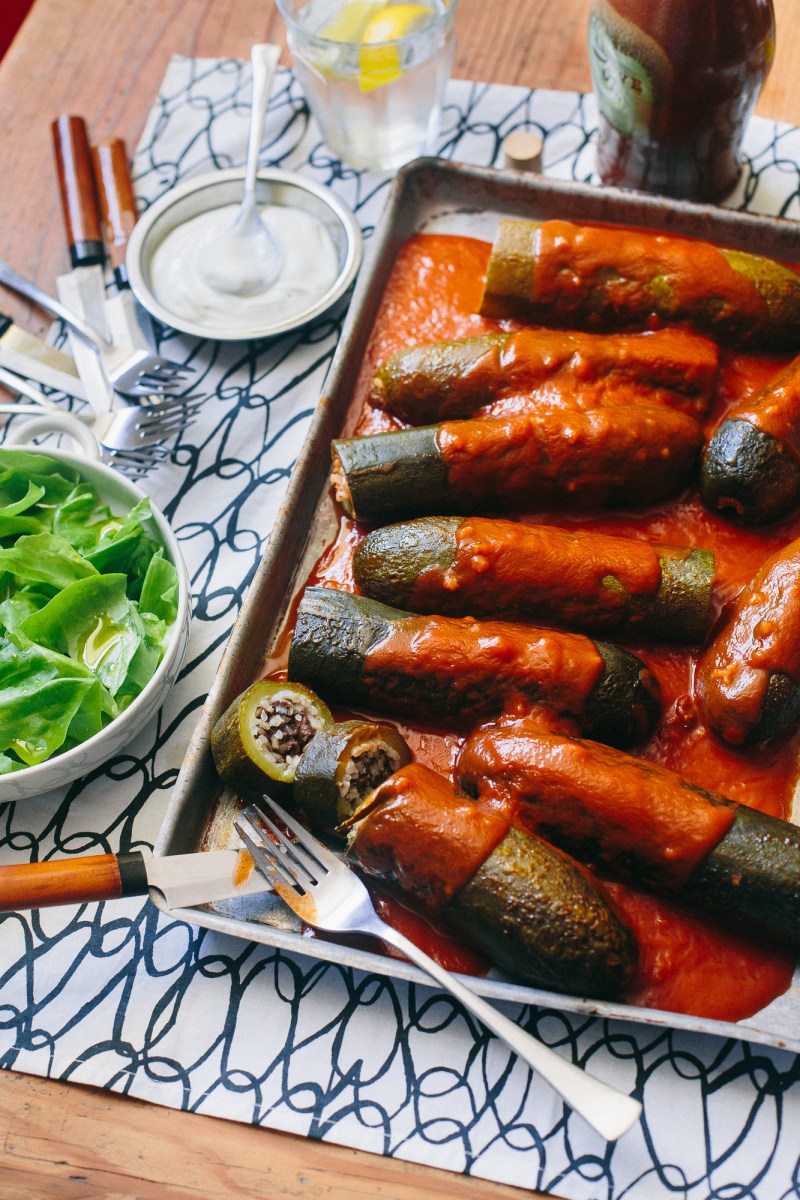 As you probably know, the winter squashes we know today – pumpkins, acorn, butternut, and the like – were first domesticated in the New World, and are relatively new additions to other cuisines. But when you look up the origins of other squashes, like zucchini, the results are not so clear. As I dug through recipes for Kousa Mahshi, many would describe this dish as an ancient favorite, as if this delicious stuffed squash was enjoyed in Constantinople a thousand years ago.