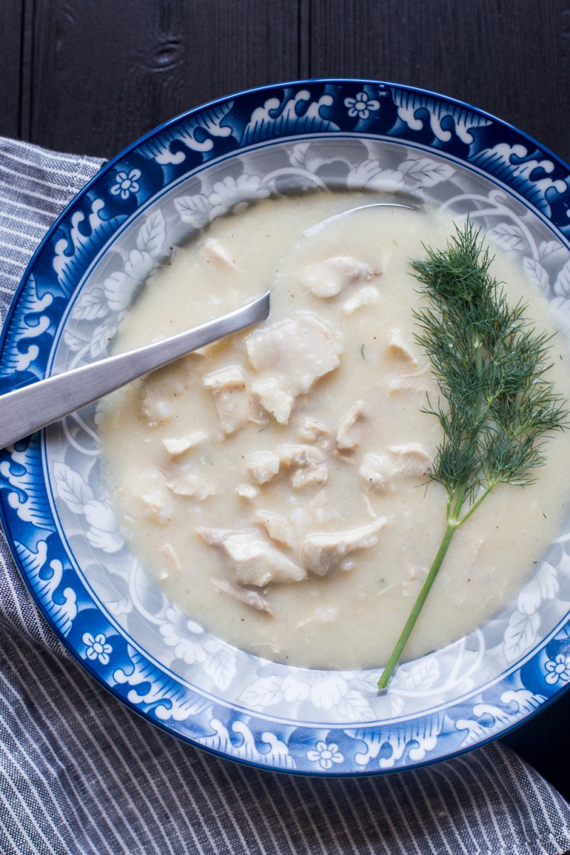Avgolemeno is a Mediterranean sauce and soup, most commonly associated with Greece. As a sauce, it’s often served with Dolma or used as a vegetable dip. But if you ask me, it really shines the most as a mild and comforting soup, and that’s why I’m sharing this recipe with you today. It features egg yolks and lemon juice which enrich and enliven the soup, and some fresh dill brings it all together to give it a distinct and just slightly exotic flavor.
