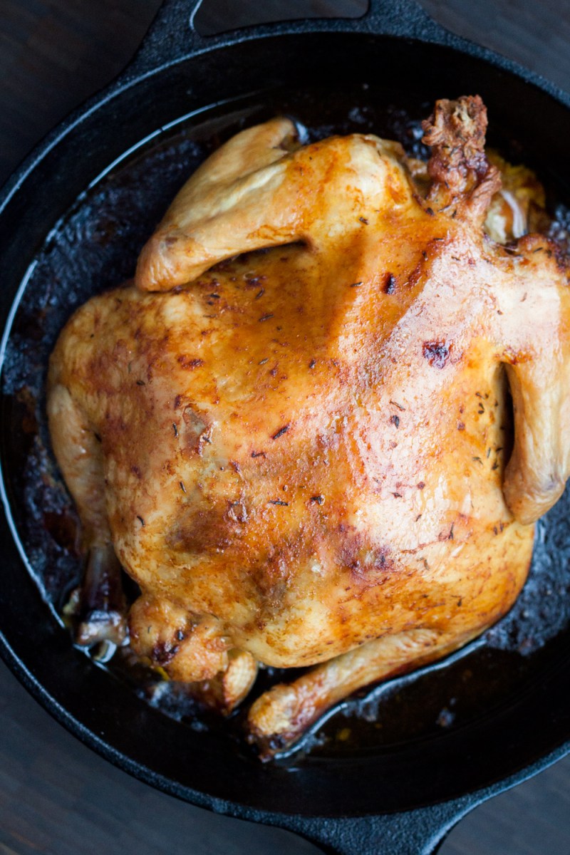 This recipe is unique in that it only needs one dish (I used a cast iron skillet), and it uses a relatively low cooking temperature of 250 degrees. Sure, it takes four to five hours to cook the bird, but it’s worth the wait.